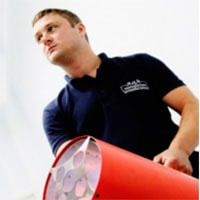 Монтаж натяжных ПВХ потолков проводится с использованием взрывобезопасных газовых баллонов для тепловой пушки. Установка тканевых полотен выполняется без нагрева.